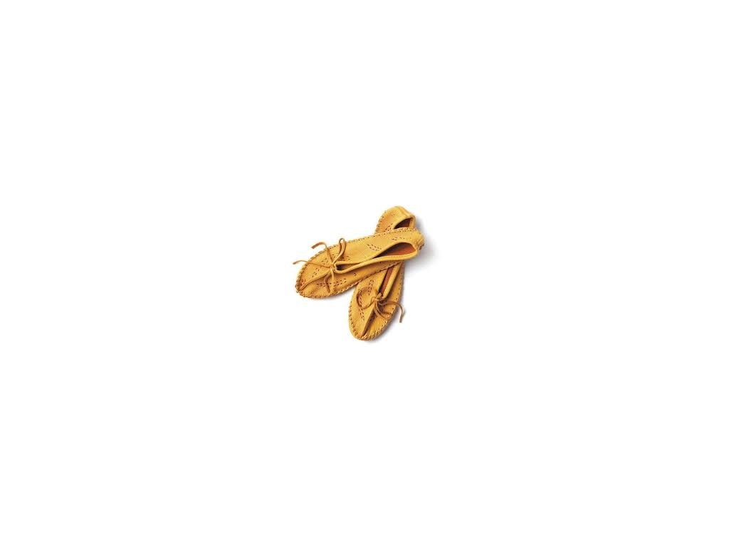 Mokasíny jsou z jemné jelení kůže, krásně zpracované a zdobené vyřezávanými ornamenty.