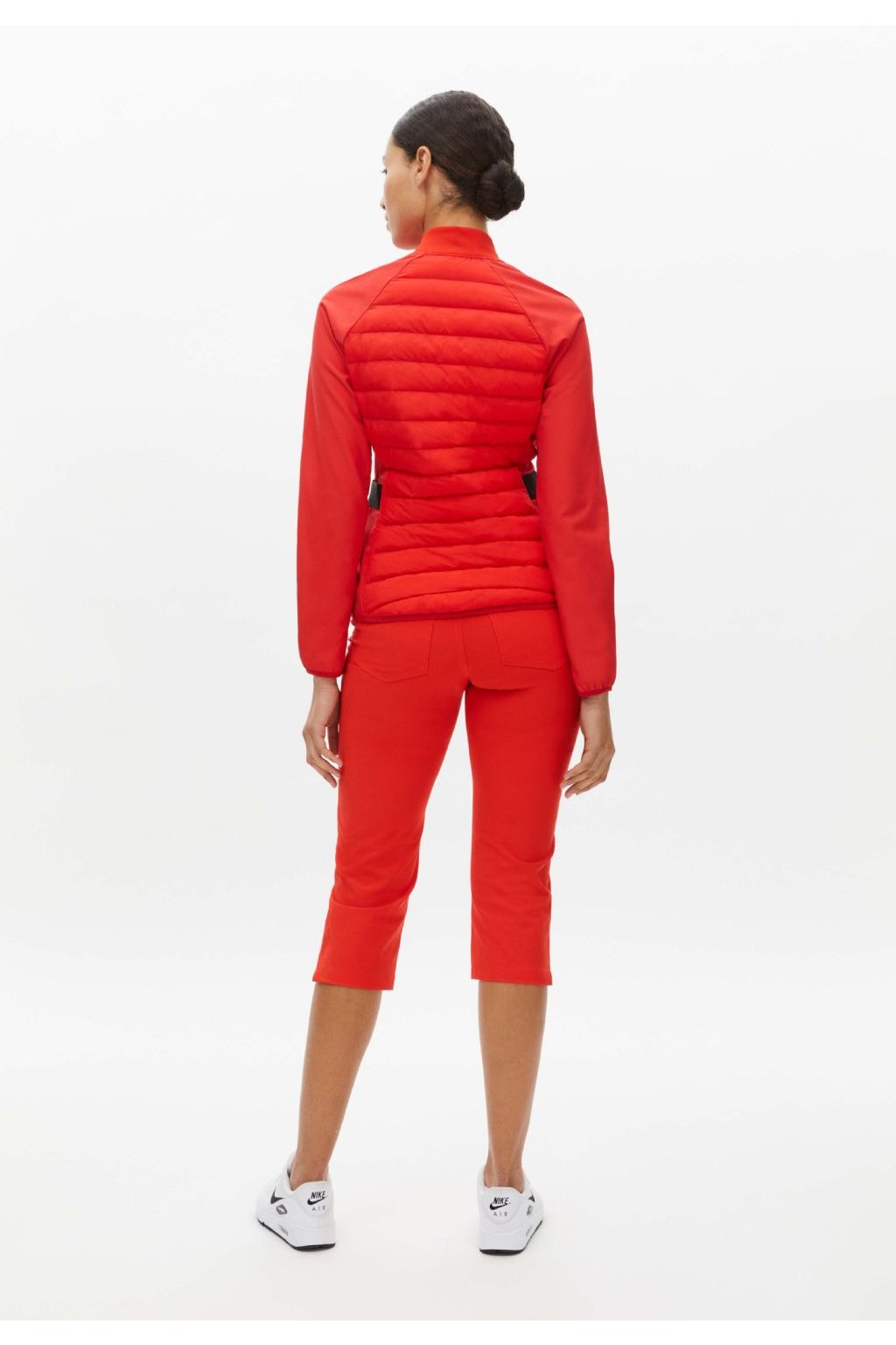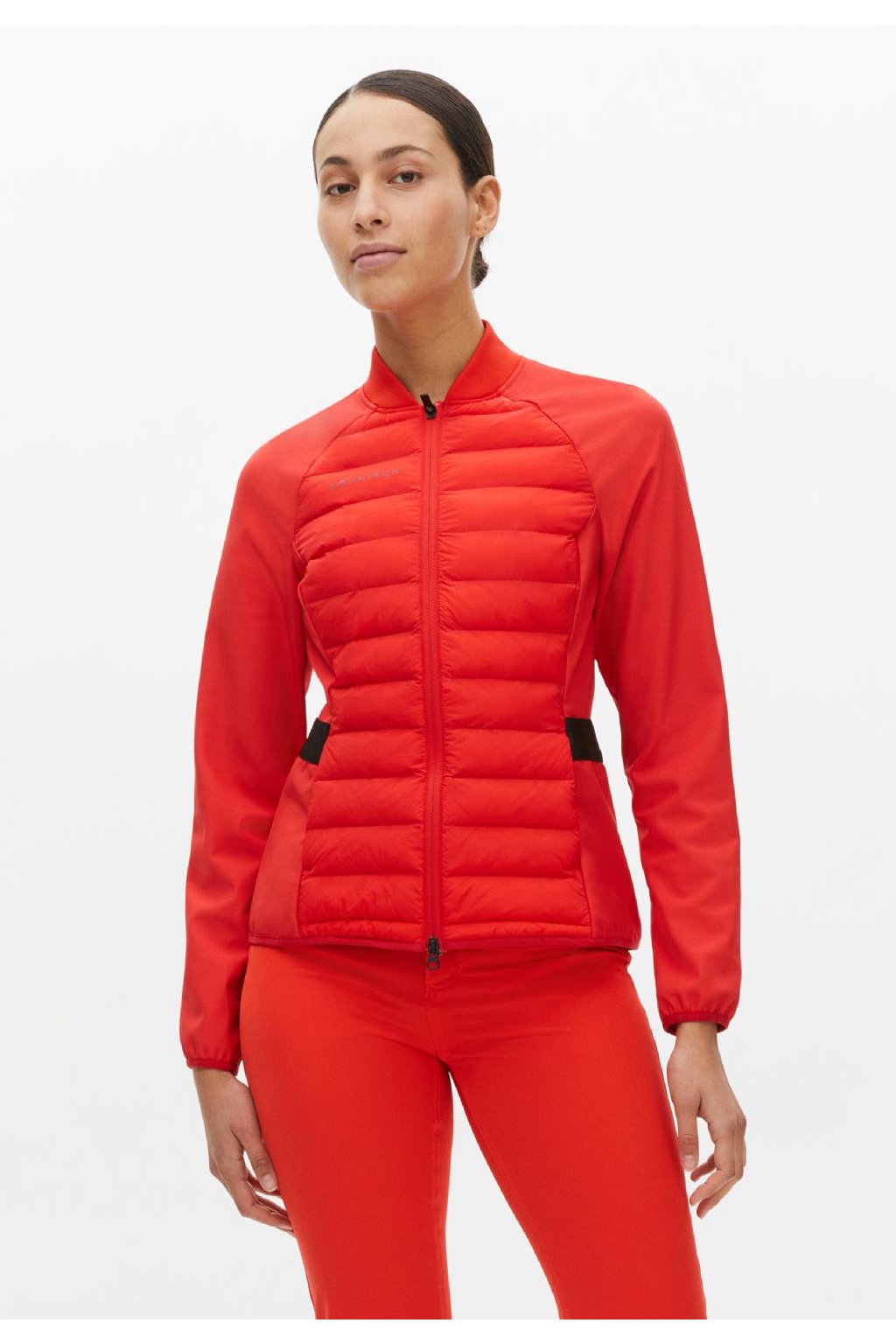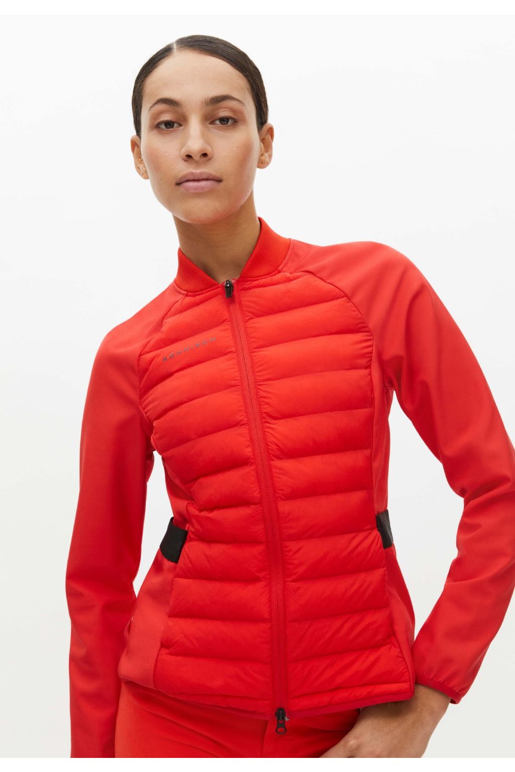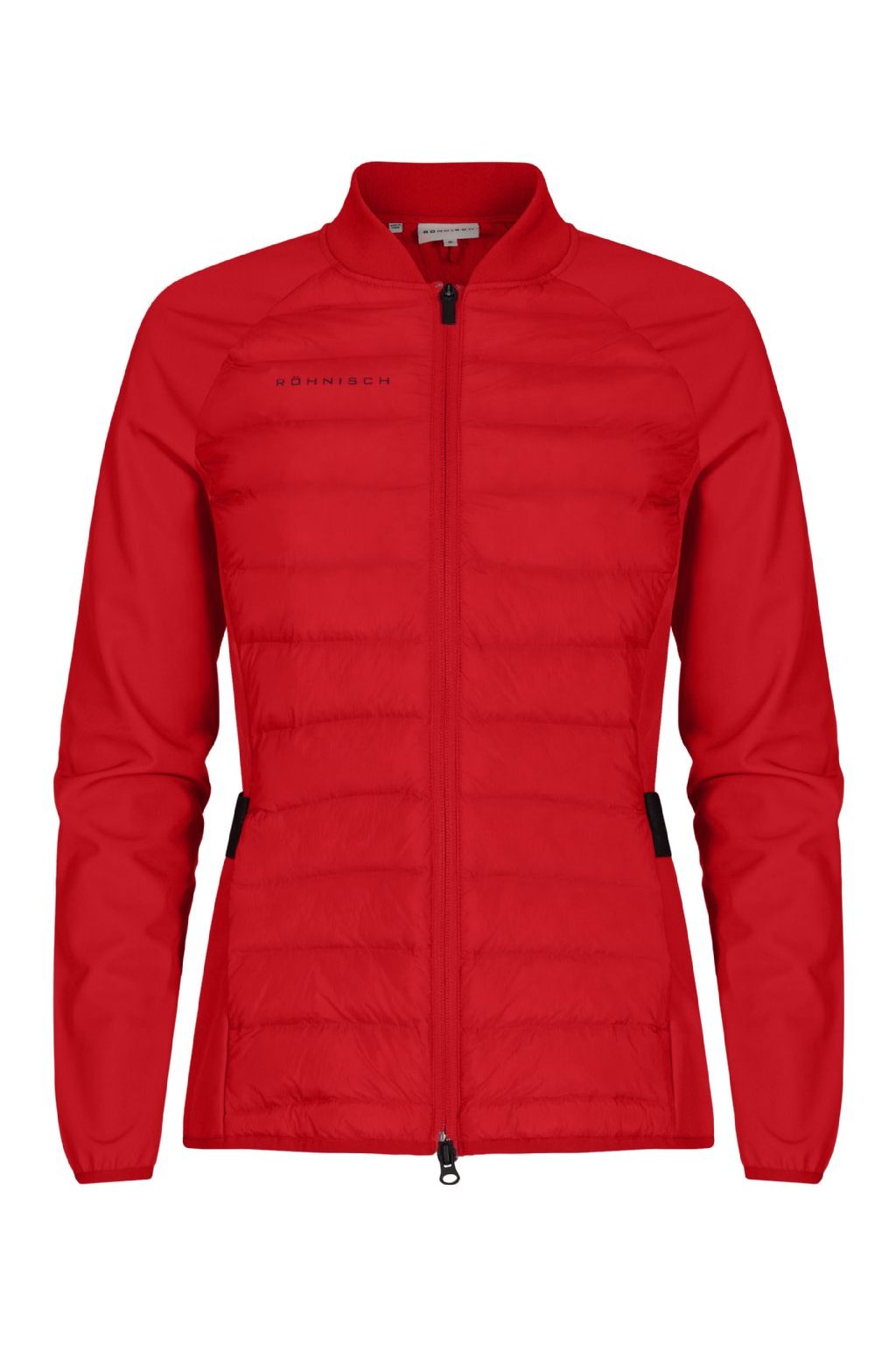 Dámská funkční zateplená bunda Force Jacket je vyrobena z kvalitního a lehkého recyklovaného materiálu. Materiál je zároveň dobře prodyšný a větruvzdorný. Bunda má přiléhavý střih a bezešvé kanálky pro termo výplň na předním i zadním díle. Na bocích jsou panely z pružného softshellového materiálu, ze stejného materiálu jsou i rukávy. U krku je měkký úpletový stojáček. V bočních panelech jsou kapsy na zip. Ozdobné elastické pásky s logem Röhnisch na bocích tvoří zajímavý detail a velmi pěknou siluetu. Bunda má kvalitní dvoucestný zip. Bunda v nádherné červené barvě Flame Red.
