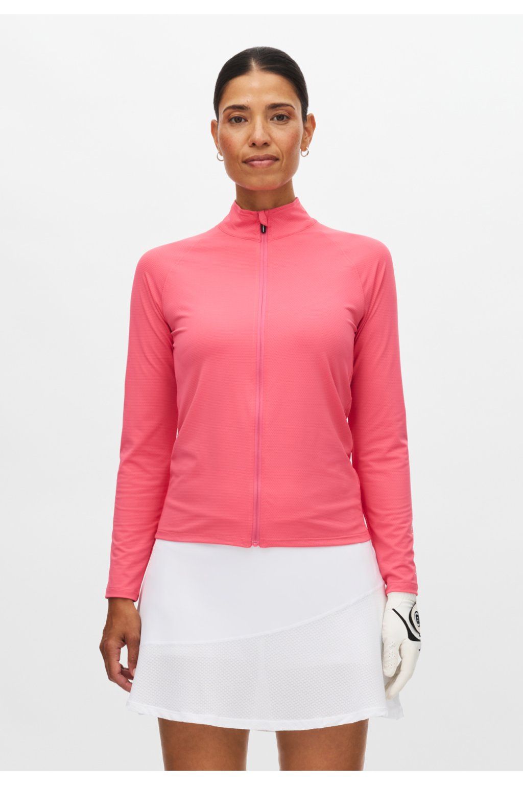 Dámská funkční mikina NICKY má polo-přiléhavý střih a je vyrobena z lehkého, prodyšného a stretchového materiálu s pružnou jaquardovou strukturou. Mikina má stojáček u krku, zip po celé délce a logo RÖHNISCH na rukávě. Ochrana UPF 50+. Mikina je navržena jako střední nebo vrchní vrstva ve skladbě oblečení. Mikina má vynikající střih a pěkně tvaruje postavu. Pro její krásný design a variabilitu použití ji oceníte i mimo golfové hřiště, jde velmi dobře kombinovat s jakýmikoliv kalhotami nebo sukní a šaty. Velkým plus i pro běžné nošení jsou funkční vlastnosti a pohodlí.