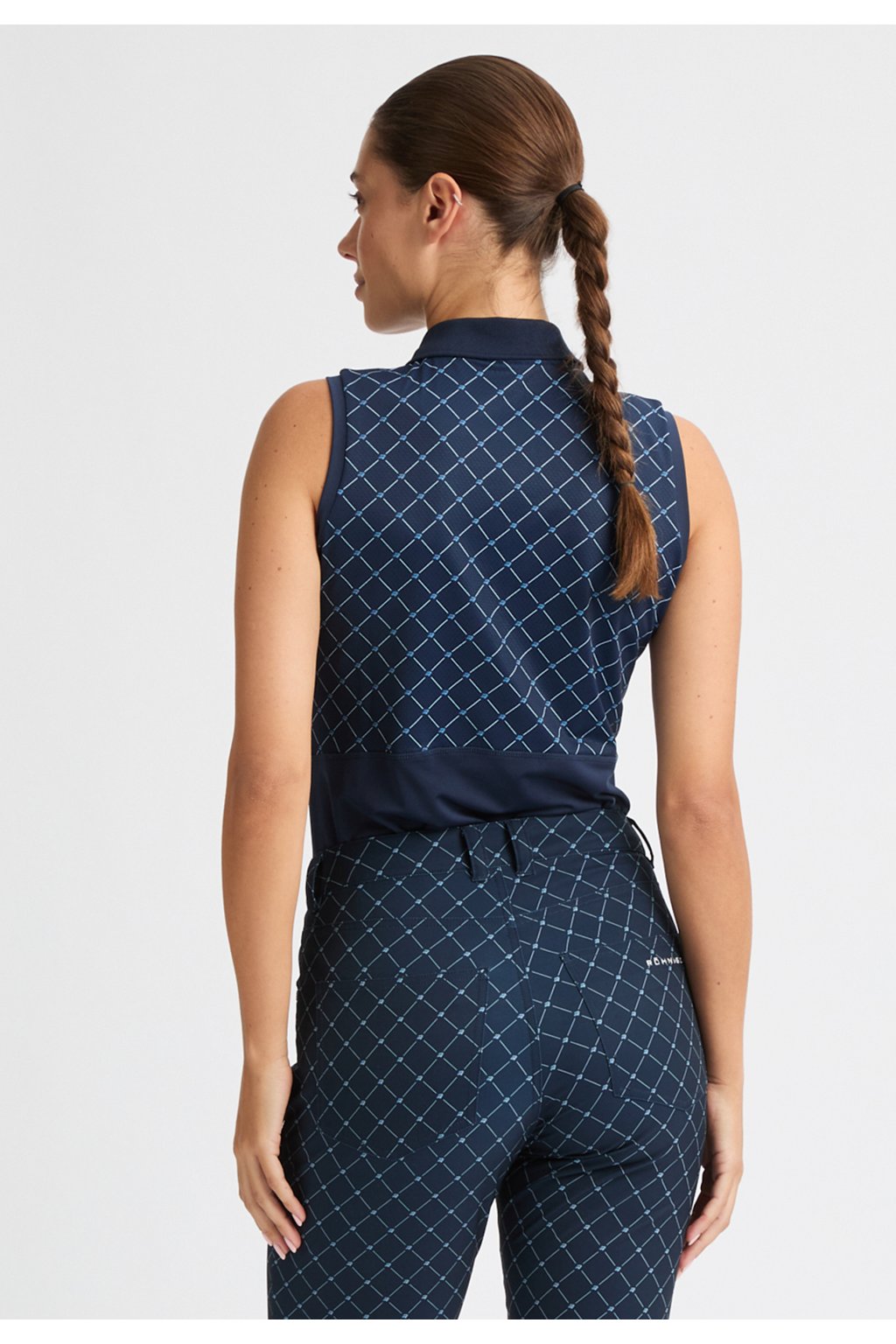 Funkční tričko NICKY je vyrobeno z lehkého a prodyšného materiálu s funkcí Quick Dry a vysokým podílem Elastanu. Ochrana proti UV záření UPF 50+. Tričko má polopřiléhavý střih a zapínání na knoflíčky. Na zadním díle jemný geometrický vzor, který barevně ladí s kalhotami a sukněmi ze stejné kolekce.