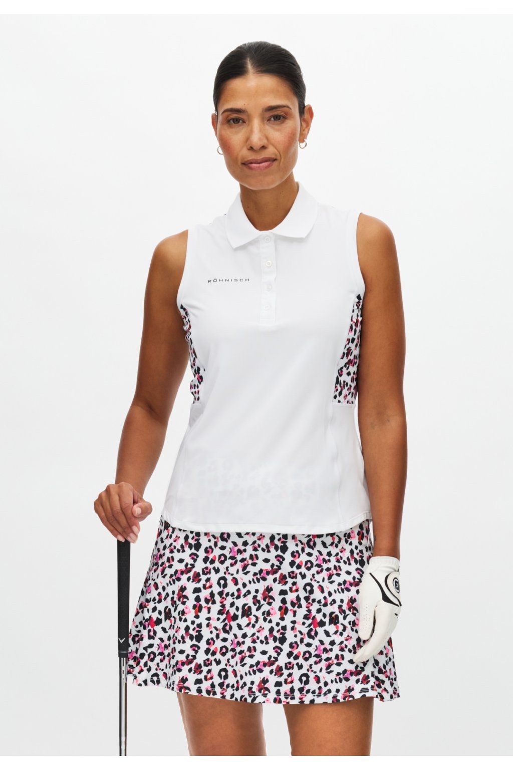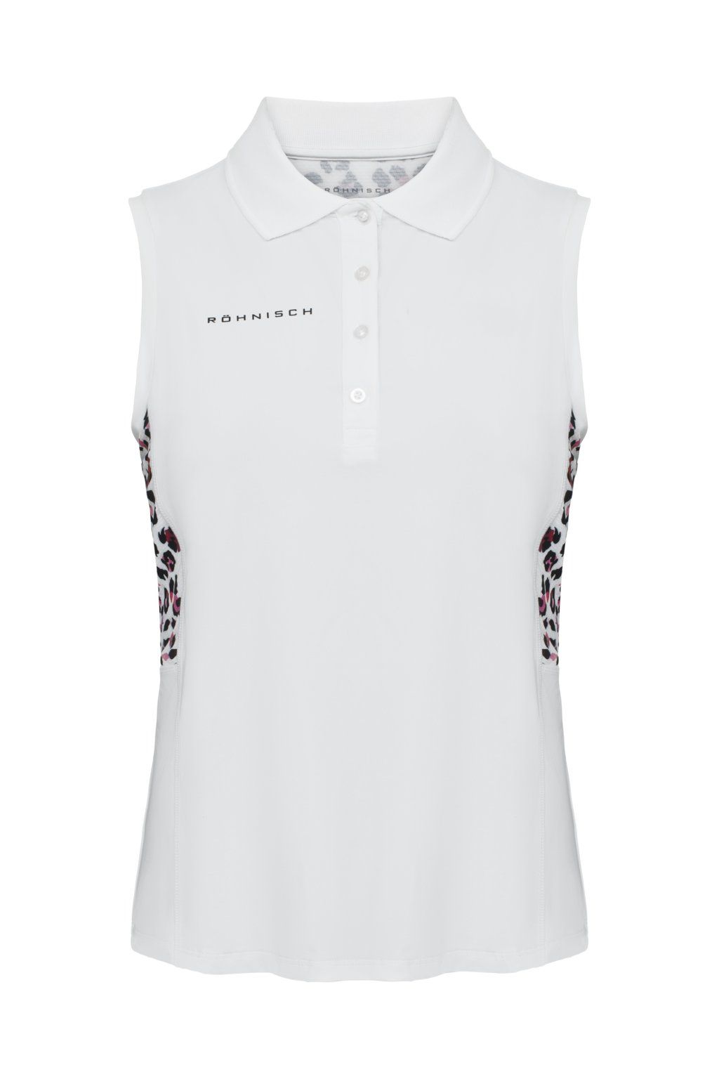 Funkční tričko NICKY je vyrobeno z lehkého a prodyšného materiálu s funkcí Quick Dry a vysokým podílem Elastanu. Ochrana proti UV záření UPF 50+. Tričko má polopřiléhavý střih a zapínání na knoflíčky. Na zadním díle a na bocích je panel z perforovaného materiálu pro ještě lepší větrací efekt. Panel má módní vzor, který barevně ladí se sukněmi ze stejné kolekce.