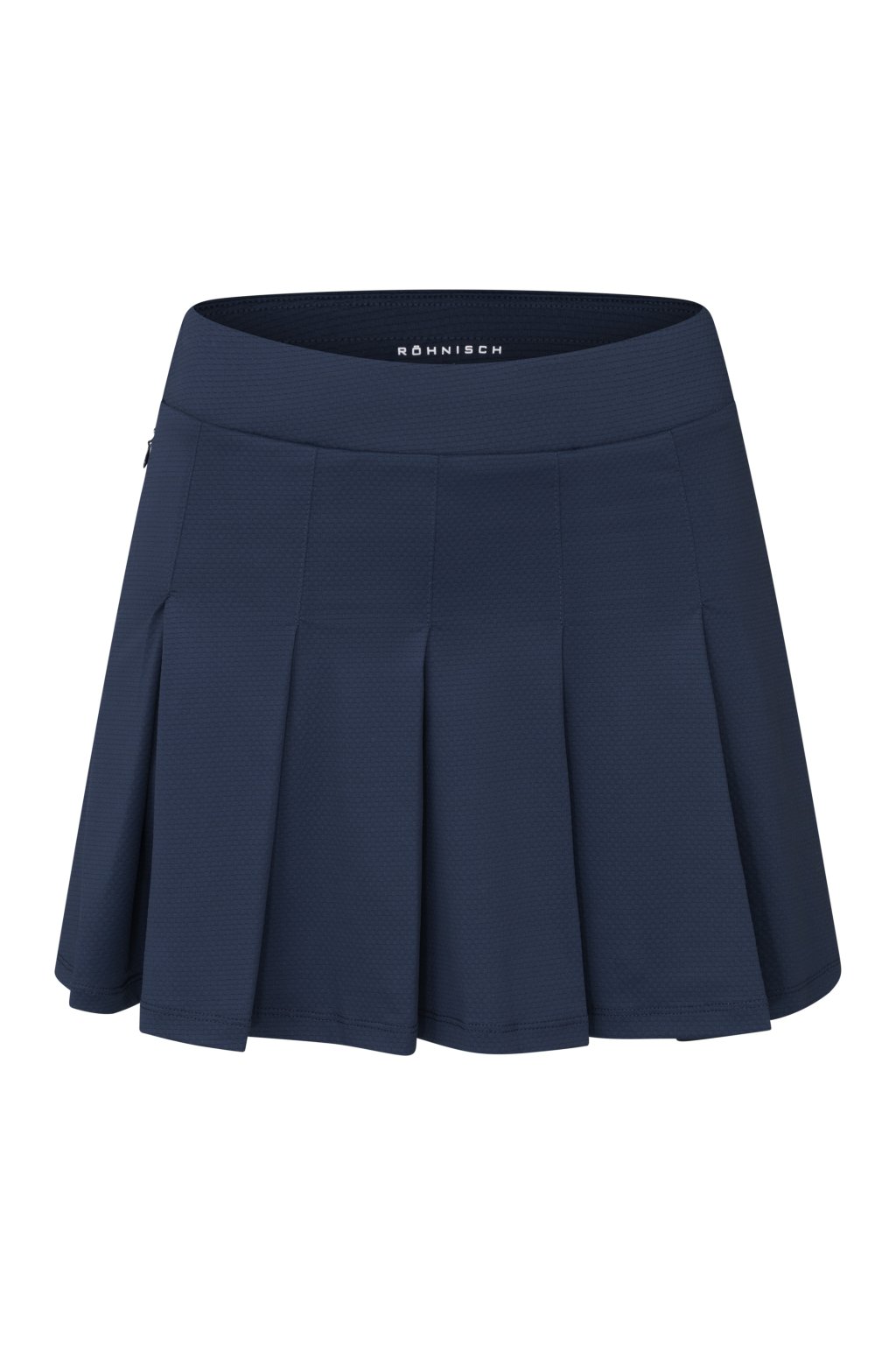 Funkční golfová sukně NICKY je vyrobena z lehkého a prodyšného materiálu s funkcí Quick Dry a vysokým podílem elastanu. Ochrana UPF 50+. "Pull-on" model bez zapínání spolu se širším páskem v pase velmi dobře sedí a činí sukni mimořádně pohodlnou. Sklady jsou rozpuštěné v délce ca 2/3 od spodního okraje, kapsa na zip v bočním švu. Sukně má všité šortky v barvě sukně. Logo ve formě stylizovaného R-loga (Röhnisch) u spodního okraje sukně.