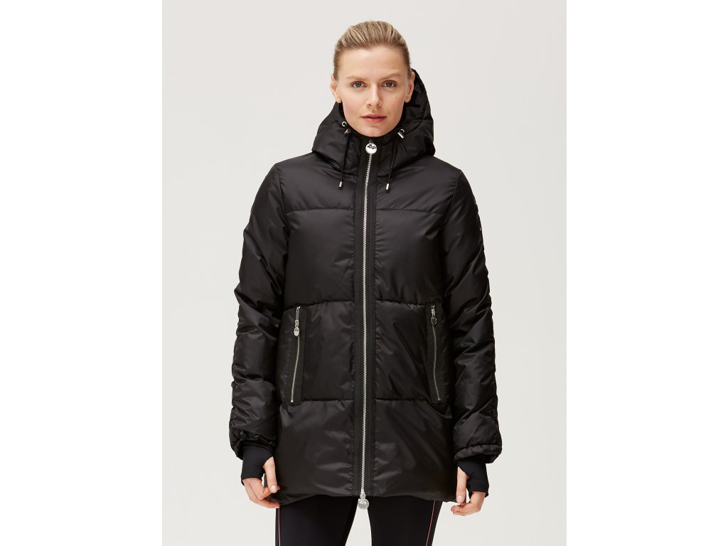 Fluocarbon-free materiál. Bunda má neoddělitelnou kapuci přecházející do vysokého límce. Kapuce je lemována stahovací šňůrkou. Zapínání na stříbrný