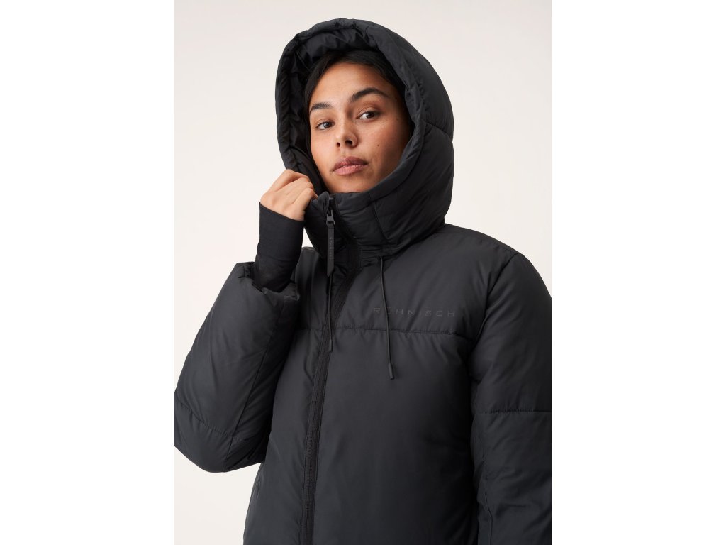 Fluocarbon-free materiál. Bunda má neoddělitelnou kapuci přecházející do vysokého límce. Kapuce je lemována stahovací šňůrkou. Zapínání zip, dvě kapsy na předním díle. Vnitřní manžety v ukončení rukávů.